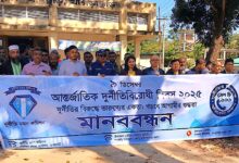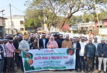 ঝালকাঠিতে সাংবাদিক তুহিন হত্যাকারীদের দৃষ্টান্তমূলক শাস্তির দাবিতে মানববন্ধন