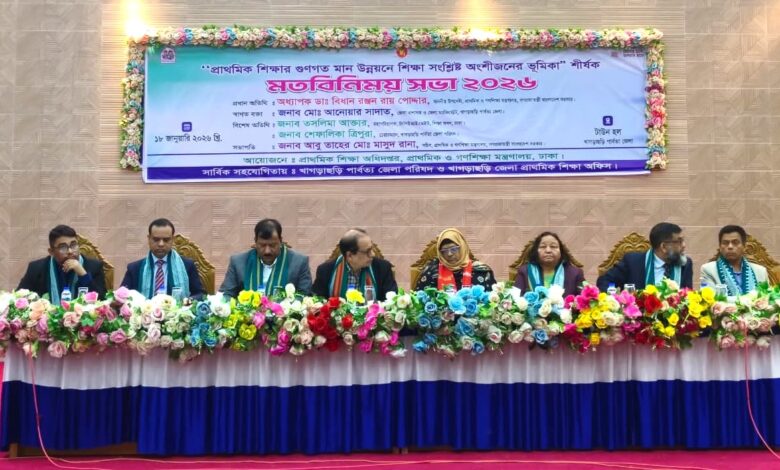 প্রাথমিক শিক্ষার গুণগত মান উন্নয়ন এবং শিক্ষা ব্যবস্থাকে আরও কার্যকর ও অন্তর্ভুক্তি মূলক করতে খাগড়াছড়িতে শিক্ষা সংশ্লিষ্ট অংশীজনদের নিয়ে এক মতবিনিময় সভা অনুষ্ঠিত হয়েছে।