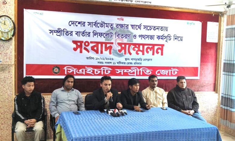 রোববার (১৮ জানুয়ারি) দুপুর ১২টায় খাগড়াছড়ি প্রেসক্লাবে আয়োজিত এক সংবাদ সম্মেলনে এসব কর্মসূচি ও দাবি তুলে ধরেন সংগঠনটির নেতৃবৃন্দ।
