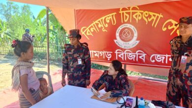 ১০ আগস্ট ২৫ রবিবার দুপুরে বাঘৈর নগর গ্রামের প্রধান সড়কে ঘন্টাব্যাপী মানববন্ধনে স্থানীয় বাসিন্দারা বলেন, আমরা উন্নয়ন চাই, তবে তা মানবিক ও সঠিক পথে হতে হবে। জনগণের মতামত ছাড়া কোনো উন্নয়ন প্রকল্প যেন বাস্তবায়ন না হয়।