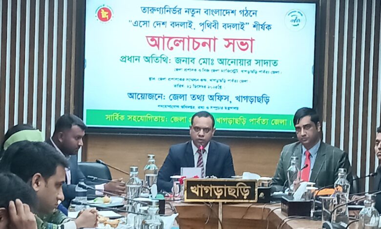তারুণ্যের শক্তিকে কাজে লাগিয়ে উন্নত, মানবিক ও আধুনিক বাংলাদেশ গঠনের প্রত্যয়ে খাগড়াছড়িতে অনুষ্ঠিত হয়েছে ‘এসো দেশ বদলাই, পৃথিবী বদলাই’ শীর্ষক এক আলোচনা সভা। রবিবার (২১ ডিসেম্বর) দুপুরে জেলা প্রশাসকের কার্যালয়ের সম্মেলন কক্ষে এ সভা অনুষ্ঠিত হয়।