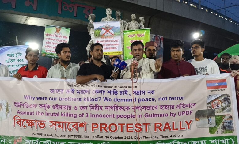 বক্তারা বলেন,”আজ পাহাড়ে যারা নিরীহ মানুষ হত্যা করছে, তারাই শান্তির মুখোশ পরে আন্তর্জাতিক মহলে মিথ্যাচার চালাচ্ছে। এই সন্ত্রাসীদের বিচারের আওতায় আনতে হবে-নইলে পাহাড়ে স্থায়ী শান্তি প্রতিষ্ঠা অসম্ভব।”