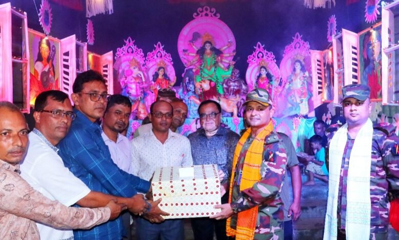 এ সময় ব্রিগেডিয়ার জেনারেল হাসান মাহমুদ মন্দির পূজা কমিটির নিকট উপহার সামগ্রী তুলে দেন। তিনি বলেন,“ধর্ম যার যার, উৎসব সবার। পূজা-উৎসব সমাজে সৌহার্দ্য ও সম্প্রীতি বজায় রাখতে সহায়ক।”