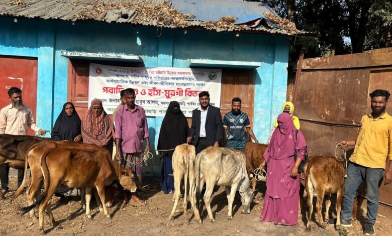 পার্বত্য চট্টগ্রামের দুর্গম পাহাড়ি জনপদে আত্মকর্মসংস্থান ও টেকসই জীবিকার সুযোগ সৃষ্টি করতে ২০২৫–২০২৬ অর্থবছরে পার্বত্য চট্টগ্রাম উন্নয়ন সহায়তার আওতায় খাগড়াছড়িতে অসহায়, গরীব ও দুঃস্থ পরিবারের মাঝে গবাদি পশু ও হাঁস-মুরগি বিতরণ করা হয়েছে।