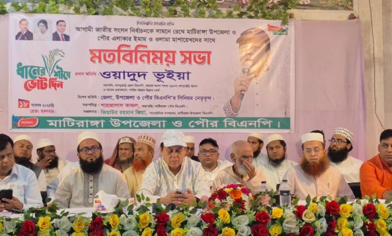 মাটিরাঙ্গা পৌর বিএনপির সভাপতি শাহজালাল কাজলের সভাপতিত্বে অনুষ্ঠিত সভায় জেলা ও উপজেলা বিএনপির বিভিন্ন পর্যায়ের নেতৃবৃন্দ উপস্থিত ছিলেন। সভা শেষে সন্ধ্যায় মাটিরাঙা উপজেলা বাজারের ব্যবসায়ীদের সঙ্গে আরও একটি মতবিনিময় সভায় অংশ নেবেন ধানের শীষের প্রার্থী ওয়াদুদ ভূইয়া।