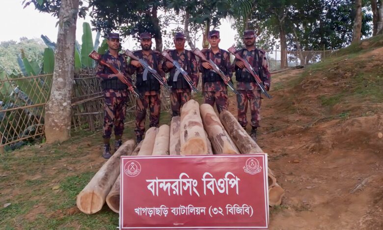 খাগড়াছড়ি সীমান্তে বিজিবির অভিযানে অবৈধ সেগুন কাঠ জব্দ