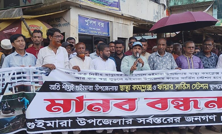 গুইমারায় স্বাস্থ্য কমপ্লেক্স ও ফায়ার সার্ভিস স্টেশন স্থাপনের দাবিতে মানববন্ধন