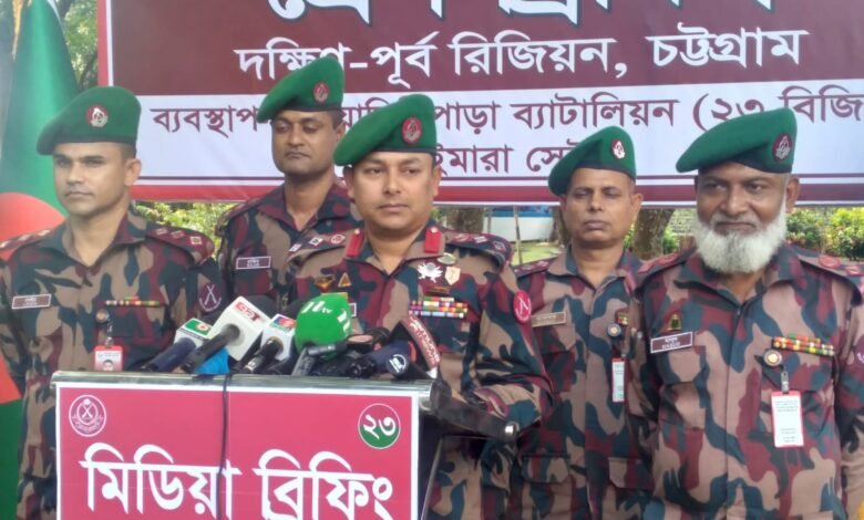 বৃহস্পতিবার (২৩ অক্টোবর) খাগড়াছড়ির যামিনী পাড়া বর্ডার গার্ড বাংলাদেশ ২৩ বিজিবি ব্যাটালিয়ন সদর দফতরে আয়োজিত সংবাদ সম্মেলনে এসব তথ্য জানান ব্যাটালিয়নের অধিনায়ক লেফটেন্যান্ট কর্নেল খালেদ ইবনে হোসেন।