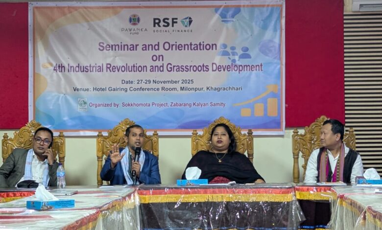 ২৭ নভেম্বর ২০২৫ ,বৃহস্পতিবার সকালে খাগড়াছড়ির মিলনপুরস্থ হোটেল গাইরিং কনফারেন্স হলে তিনদিনব্যাপি “চতুর্থ শিল্প বিপ্লব: সম্ভাবনা, চ্যালেঞ্জ ও আমাদের প্রস্তুতি” শীর্ষক সেমিনার ও কর্মশালার উদ্বোধন করেন অতিরিক্ত জেলা প্রশাসক (শিক্ষা ও আইসিটি) রুমানা আক্তার। উদ্বোধনী অনুষ্ঠানে সভাপতিত্ব করেন জাবারাং কল্যাণ সমিতির নির্বাহী পরিচালক মথুরা বিকাশ ত্রিপুরা।