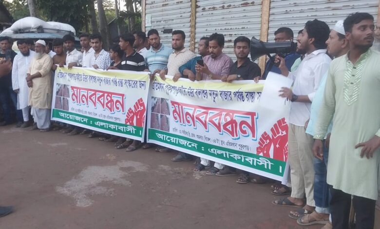 তাই এলাকার ভুক্তভোগী মানুষ দীর্ঘদিনের পুঞ্জীভূত ব্যথায় ক্ষিপ্ত হয়ে রাস্তার উপর মানববন্ধন ও বিক্ষোভ সমাবেশ করে।