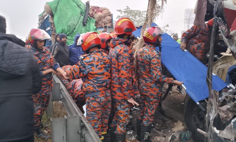 পুলিশ জানায়, পূর্বাশা পরিবহনের একটি বাস দাঁড়িয়ে থাকা ট্রাকের পেছনে সজোরে ধাক্কা দেয়। এতে বাসটির সামনের অংশ দুমড়ে যায়। নিহত তারেকের বাড়ি চুয়াডাঙ্গায়। আহতদের বিভিন্ন হাসপাতালে পাঠানো হয়েছে। দুর্ঘটনার পেছনে ঘন কুয়াশা ও অতিরিক্ত গতি কারণ হতে পারে বলে জানিয়েছে হাইওয়ে পুলিশ।