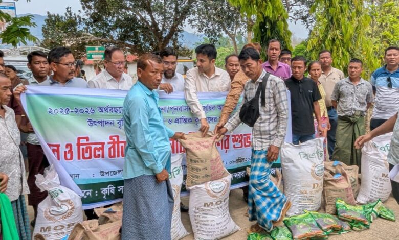 ২০২৫–২০২৬ অর্থবছরের কৃষি প্রণোদনা/পুনর্বাসন কর্মসূচির আওতায় আউশ ধান ও তিল উৎপাদন বৃদ্ধির লক্ষ্যে ক্ষুদ্র ও প্রান্তিক জুম চাষিদের মাঝে বিনামূল্যে বীজ ও সার মধ্যের ৮শত কৃষক কৃষানিকে জুমে আউশ ধান বীজ ৫ কেজি এমওপি ১০ কেজি, ডিএপি ১০ কেজি, ১শত জন কৃষক কৃষানিকে তিল বীজ ১ কেজি, এমওপি ৫ কেজি ডিএপি ১০ কেজি করে বিতরণ করা হয়।