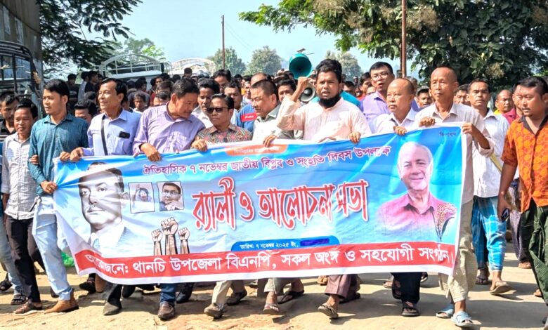 বান্দরবানের থানচি উপজেলার নানা কর্মসূচির মধ্য দিয়ে জাতীয় বিপ্লব ও সংহতি দিবস পালন করেছে উপজেলা বিএনপি ও অঙ্গসংগঠন।