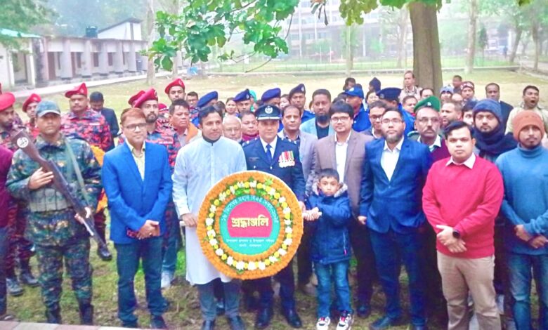 থানচিতে মহান শহীদদের প্রতি ফুলের শ্রদ্ধা
