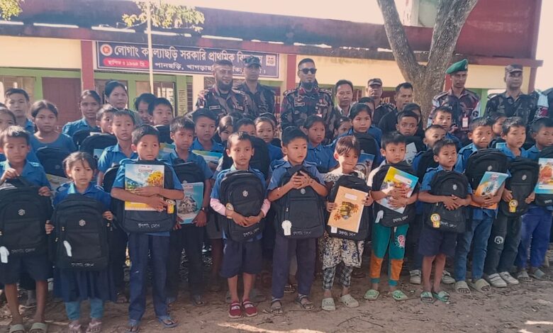 তারই ধারাবাহিকতায় ২৭ নভেম্বর ২০২৫ বৃহস্পতিবার দুপুরে দুর্গম অংজ পাড়ায় পানীয় জলের অভাব পুরলে নলকুপ স্থাপন, দুঃস্থ মহিলাদের স্বাভলম্বীর জন্য সেলাই মেশিন প্রদান, অসহায়দের ঘরের ছাউনির জন্য টিন ও নগত অর্থ প্রদান, দুর্গম এলাকার প্রাথমিক শিক্ষার্থীদের খাতা ও স্কুল ব্যাগ প্রদান করা হয়।