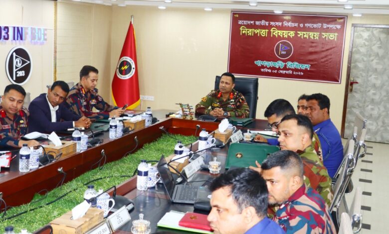 আসন্ন ত্রয়োদশ জাতীয় সংসদ নির্বাচন ও গণভোটকে ঘিরে নিরাপত্তা ব্যবস্থা জোরদার ও সার্বিক প্রস্তুতি পর্যালোচনার লক্ষ্যে খাগড়াছড়ি সেনা রিজিয়নের আয়োজনে এক গুরুত্বপূর্ণ নিরাপত্তা বিষয়ক সমন্বয় সভা অনুষ্ঠিত হয়েছে।