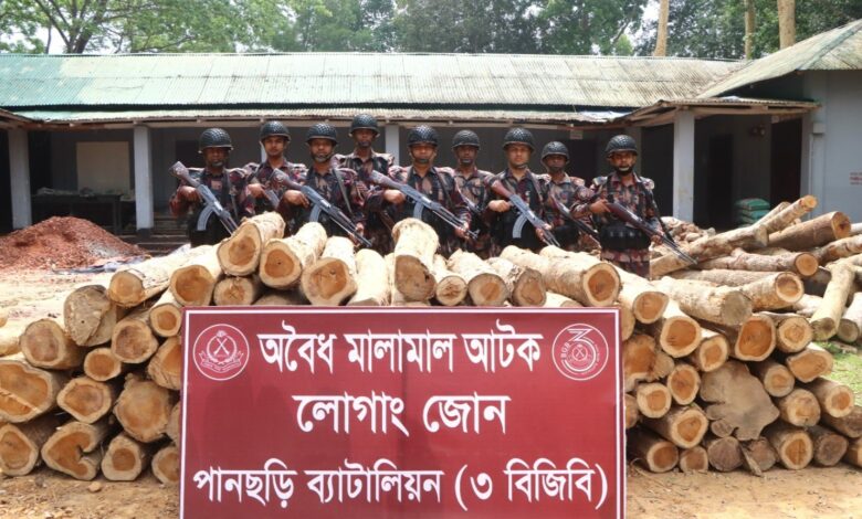 পানছড়িতে বিজিবির পৃথক অভিযানে বিপুল পরিমাণ অবৈধ কাঠ জব্দ