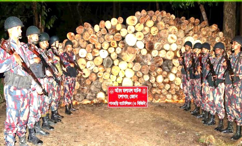 পানছড়িতে ৩ বিজিবির অভিযানে অবৈধ গোল কাঠ আটক