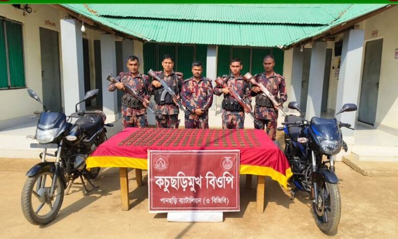 পানছড়ি ব্যাটালিয়নের অধিনায়ক দৃঢ় কণ্ঠে জানান, সীমান্ত এলাকায় অবৈধ অস্ত্র, গোলাবারুদ ও চোরাচালানের বিরুদ্ধে বিজিবির ‘জিরো টলারেন্স’ নীতি অব্যাহত রয়েছে। সন্ত্রাসী ও চোরাকারবারীদের যেকোনো অপতৎপরতা কঠোর হাতে দমন করা হবে। গোয়েন্দা নজরদারি ও আভিযানিক টহল আরও জোরদার করা হয়েছে এবং ভবিষ্যতেও এ ধরনের অভিযান আরও কঠোরভাবে অব্যাহত থাকবে।