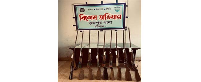 ফটিকছড়িতে ভূজপুর থানা পুলিশ বিশেষ আভিযান চালিয়ে দেশীয় তৈরী ৯ টি একনালা বন্দুক উদ্ধার করেছে।