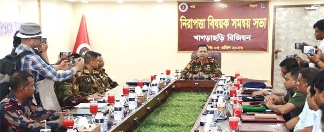 ৫ এপ্রিল ২০২৬; রোববার দুপুরে সেনাবাহিনীর ২০৩ পদাতিক ব্রিগেডের খাগড়াছড়ি সদর রিজিয়ন সদর দপ্তরের কনফারেন্স রুমে এ সভা অনুষ্ঠিত হয়। এতে সভাপতিত্ব করেন রিজিয়ন কমান্ডার ব্রিগেডিয়ার জেনারেল কেএম ওবায়দুল হক।