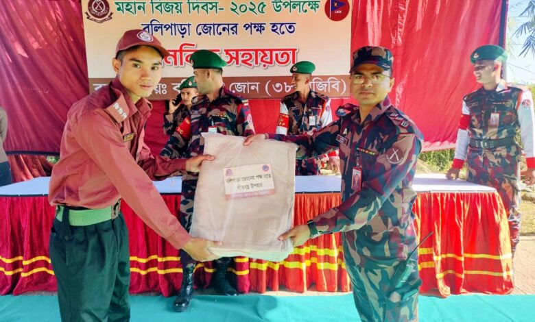 মহান বিজয় দিবসে ৩৮ বিজিবি-র শীতবস্ত্র ও খেলাধুলার সামগ্রী বিতরণ
