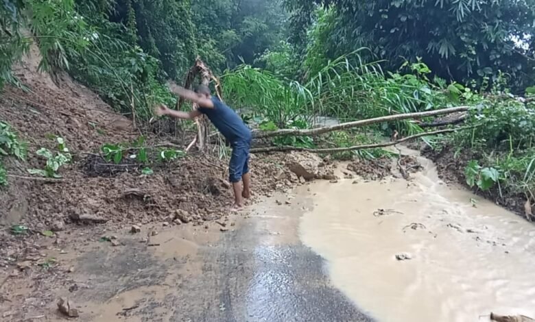 টানা ভারী বৃষ্টি ও উজান থেকে নেমে আসা পাহাড়ি ঢলে রাঙ্গামাটির বাঘাইছড়ি উপজেলার একমাত্র আন্ত জেলা সংযোগ সড়ক মারিশ্যা দিঘিনালা সড়কে পাহাড় ধসে যানচলাচল চলাচল বন্ধ রয়েছে।
