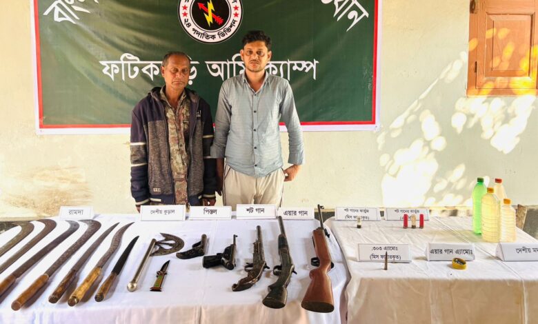 চট্টগ্রামের ফটিকছড়ি উপজেলায় বাংলাদেশ সেনাবাহিনীর বিশেষ অভিযানে অস্ত্র ও দেশীয় মদ সহ দুই সশস্ত্র সন্ত্রাসীকে আটক করা হয়েছে।