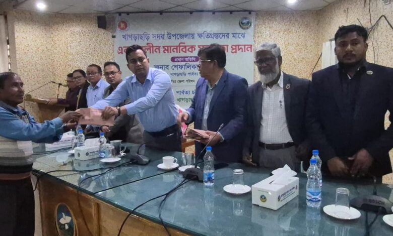 খাগড়াছড়ি সদর উপজেলায় বিভিন্ন কারণে ক্ষতিগ্রস্ত ৩৮ পরিবারের মাঝে এককালীন মানবিক সহায়তা প্রদান করা হয়েছে। মঙ্গলবার (২৫ নভেম্বর ২০২৫) বিকেলে খাগড়াছড়ি পার্বত্য জেলা পরিষদের হলরুমে ক্ষতিগ্রস্ত ৩৮জনের মাঝে বিভিন্ন ক্যাটাগরিতে মোট ১২লক্ষ টাকা আর্থিক সহায়তা বিতরন করা হয়। এই ক্ষতিপূরণ প্রদান করা হয় পার্বত্য চট্টগ্রাম বিষয়ক মন্ত্রণালয়ের সার্বিক সহযোগিতায় ও খাগড়াছড়ি পার্বত্য জেলা পরিষদের ব্যবস্থাপনায় বিতরণ করা হয়