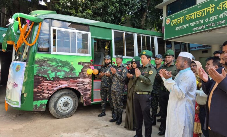 পার্বত্য জেলা খাগড়াছড়িতে প্রথম বারের মতো আনুষ্ঠানিকভাবে যাত্রা শুরু করলো বাংলাদেশ আনসার ওয়েলফেয়ার ট্রান্সপোর্ট বাস সার্ভিস।