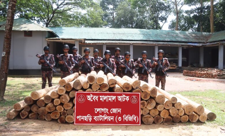 ৩ বিজিবি লোগাং জোনের বিশেষ টহলে অবৈধ কাঠ আটক
