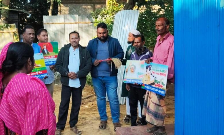 শান্তি, সুখ ও গণতন্ত্র পুনরুদ্ধারের শপথ নিয়ে ধানের শীষের পক্ষে ডোর টু ডোর লিফলেট বিতরণ কর্মসূচি পালন করেছে বিএনপি ও অঙ্গ সংগঠনের নেতাকর্মীরা।