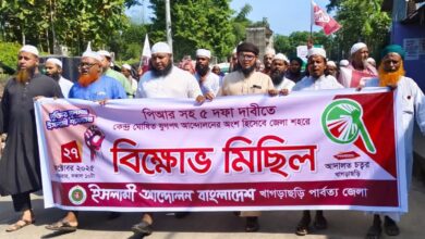 পাঁচ দফা দাবিতে খাগড়াছড়ি তে ইসলামী আন্দোলন বাংলাদেশের বিক্ষোভ মিছিল
